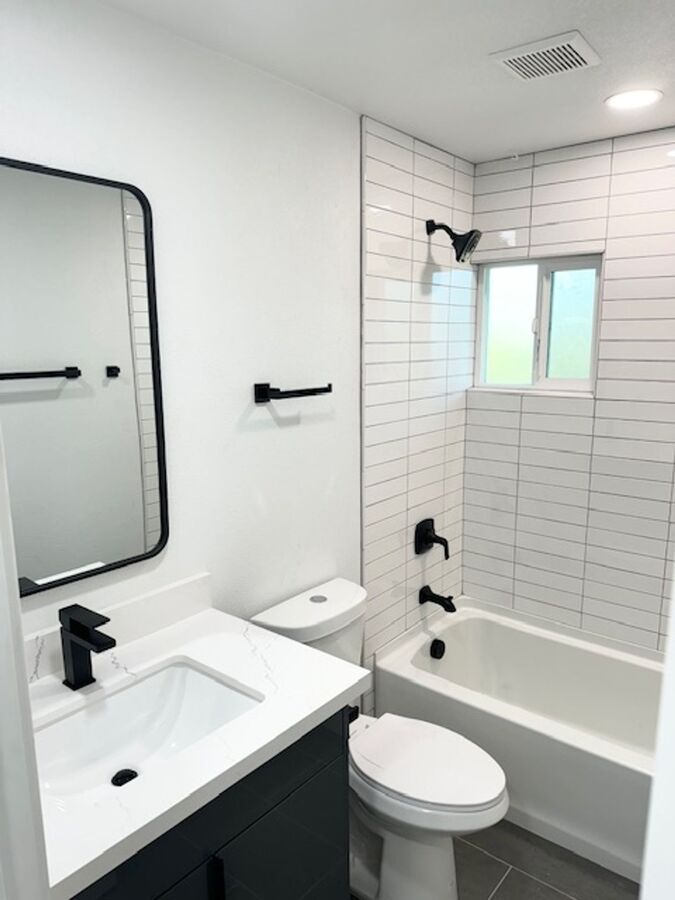 Each apartment is equipped with brand-new stainless-steel appliances, central heating, and air conditioning, ensuring comfort throughout the year. Ceiling fans add to the ambiance, providing a gentle breeze when desired. Residents will appreciate the convenience of a full-size stackable washer/dryer, beautiful wood grain vinyl flooring, and elegant quartz countertops.