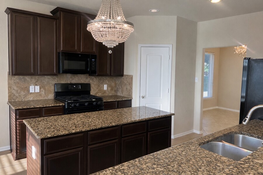Home situated on a corner lot in a cul-de-sac. Features include a tiled kitchen and breakfast area, kitchen with island, granite countertops, and black appliances. The primary bathroom offers tile flooring, double sinks, and a separate tiled shower. The backyard is fully fenced and includes a patio area, optional storage, and a covered BBQ space. Community amenities include a new neighborhood pool and recreation building. Conveniently located near Cypress Lakes, Golf Course and within five minutes of the Grand Parkway. High ceilings throughout, four bedrooms, and zoned to top-rated schools
