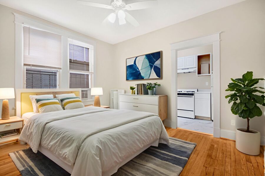 Charming Capitol Hill studio with vintage feel and terrific natural light. Cozy studio setting with a spacious living room situated in the center of the apartment with beautiful hardwood floors. On the other side of the living room is a long kitchen. All white appliances, white cabinets and white countertops make this space bright and inviting, lots of storage space and also room for a small dining table.