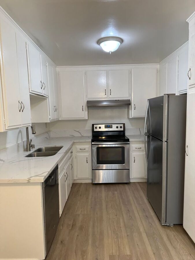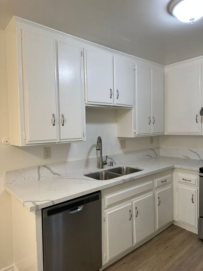 • Bright Kitchen with Stainless Steel Sink, Quartz Countertops, and Stainless Steel Appliances (Stove, Refrigerator, and Dishwasher)