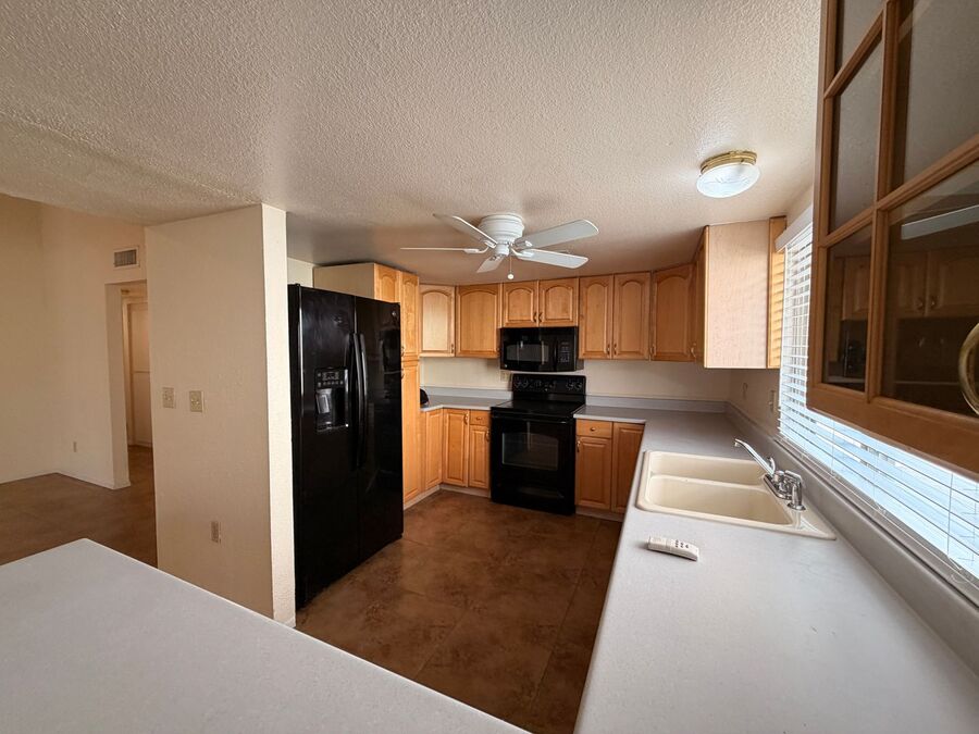 Experience living in one of Scottsdale’s sought-after neighborhoods with this spacious single-level home offering 4 bedrooms and 2 bathrooms. Showcasing vaulted ceilings, dual pane windows, and best of all — NO CARPET anywhere! Enter through the impressive double doors into a charming atrium that brings natural light into the formal living room. The bright and open family room flows seamlessly into the eat-in kitchen, complete with plenty of cabinets, black appliances, newer fixtures, and a convenient breakfast bar—an ideal layout for both everyday living and entertaining. The huge primary suite offers a private retreat with direct access to the atrium, a large walk-in closet with built-ins, and an attached bath. Three additional guest bedrooms—each with side-by-side closets—share a guest bath.