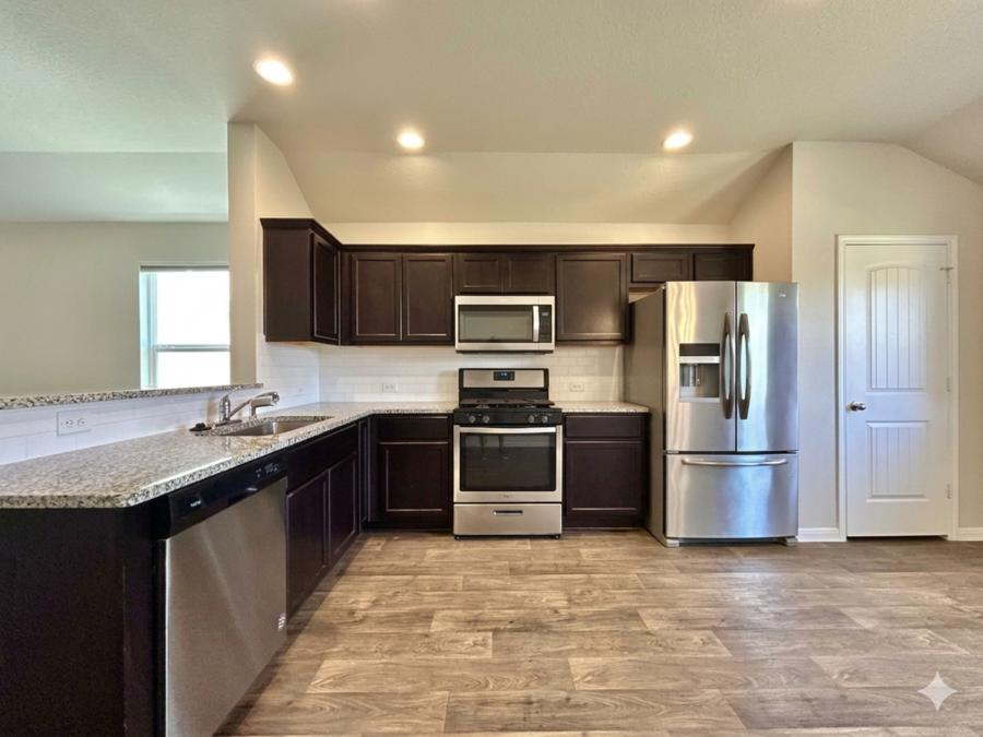 The home features a fully equipped kitchen with stainless steel appliances. A dedicated laundry room with washer and dryer included adds convenience to your daily routine.