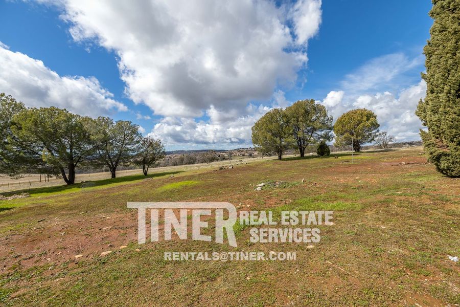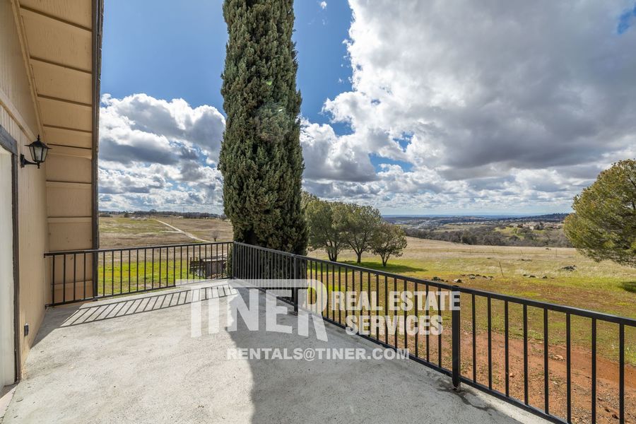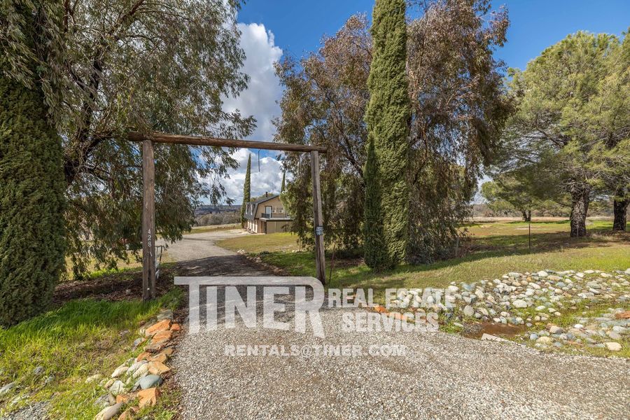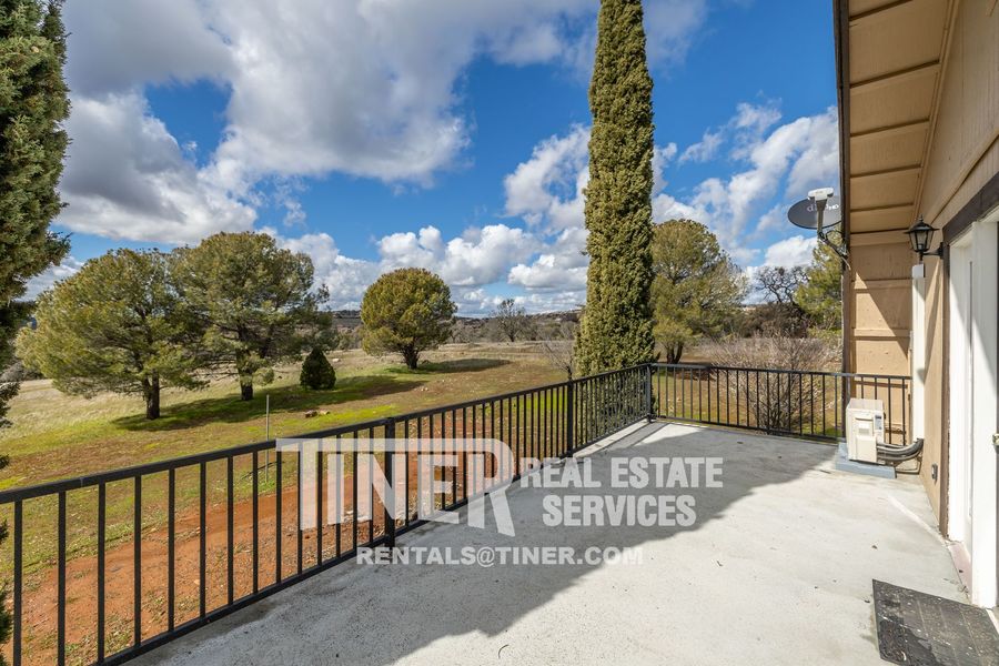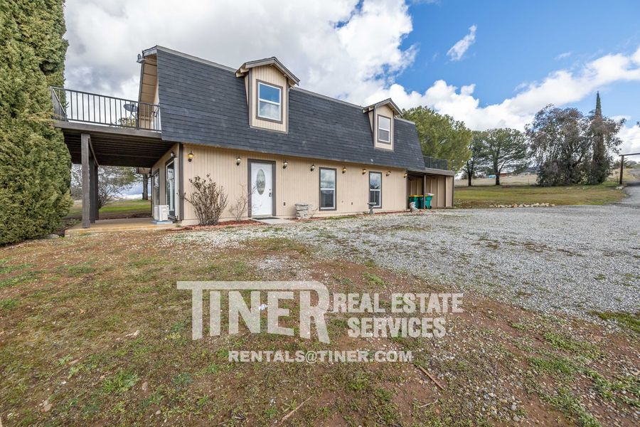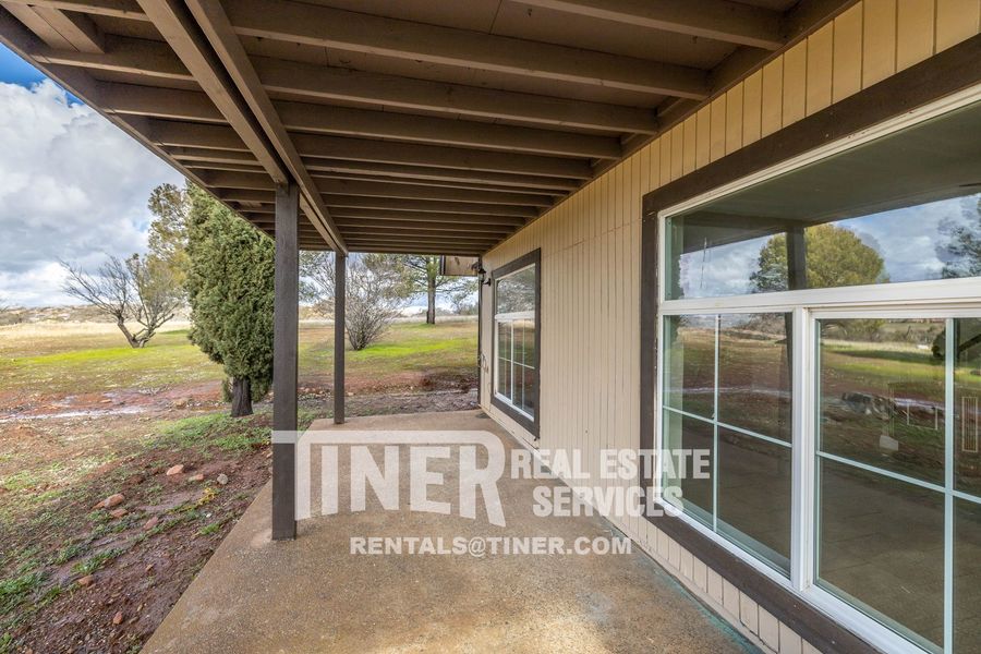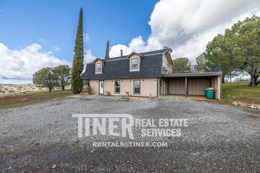 Homes like these are rare on the rental market. Located at the end of a long private drive, the views and privacy are unparalleled. This home provides the feeling of living in the country with quick access to city amenities. Massive patio above the carport. The kitchen with stainless steel appliances is open to the dining room. Living room with pellet stove and 2 ceiling fans. Primary suite with private bath, double showers, built-in cabinetry, and patio access. Hardwood flooring, ceiling fans, Split HVAC system throughout. Near Bass Lake, great shopping, and access to highway 50. Note: the large shed on the property is for owners use only.