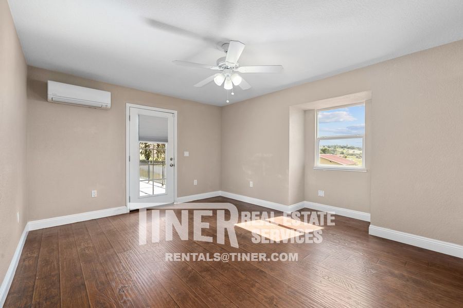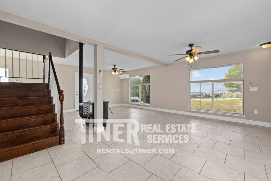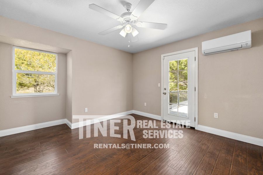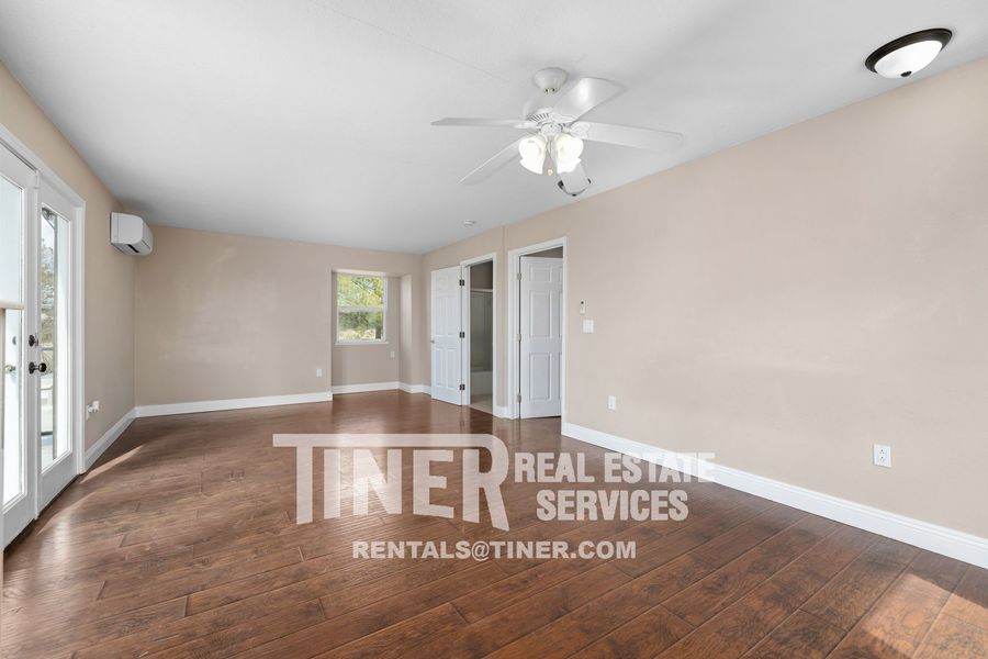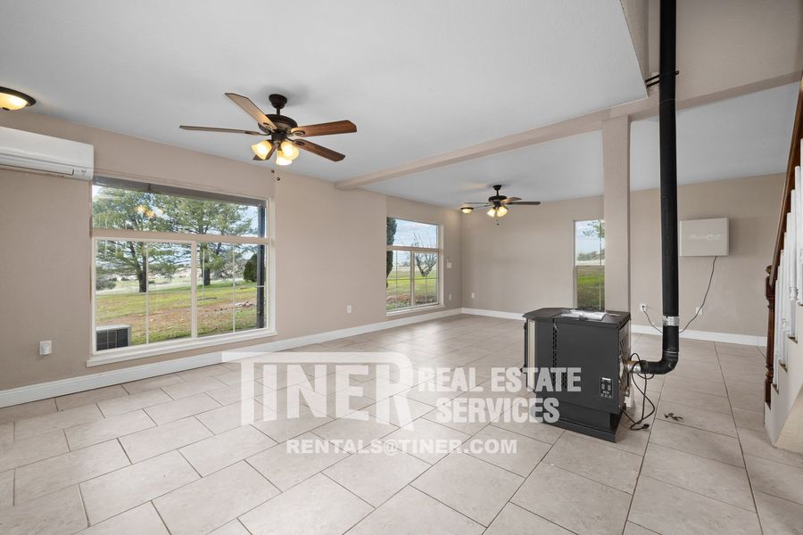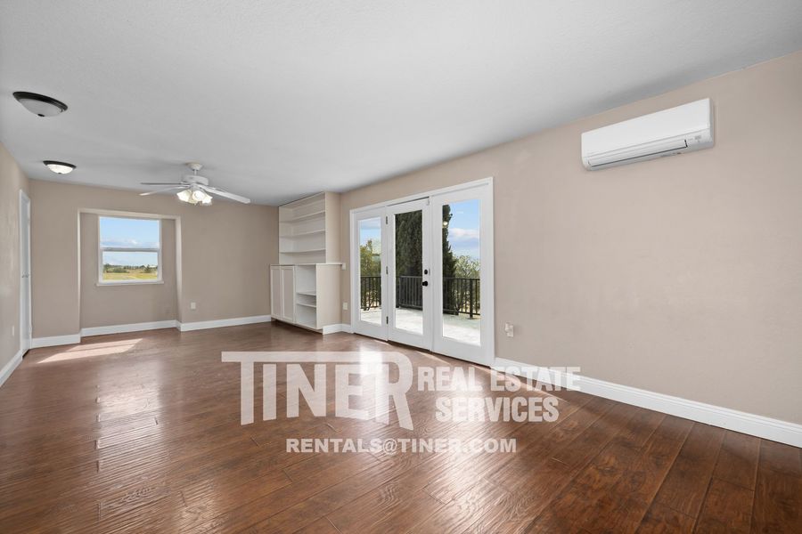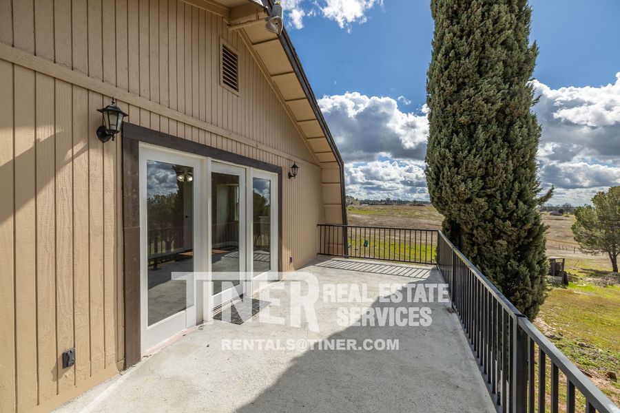 Homes like these are rare on the rental market. Located at the end of a long private drive, the views and privacy are unparalleled. This home provides the feeling of living in the country with quick access to city amenities. Massive patio above the carport. The kitchen with stainless steel appliances is open to the dining room. Living room with pellet stove and 2 ceiling fans. Primary suite with private bath, double showers, built-in cabinetry, and patio access. Hardwood flooring, ceiling fans, Split HVAC system throughout. Near Bass Lake, great shopping, and access to highway 50. Note: the large shed on the property is for owners use only.