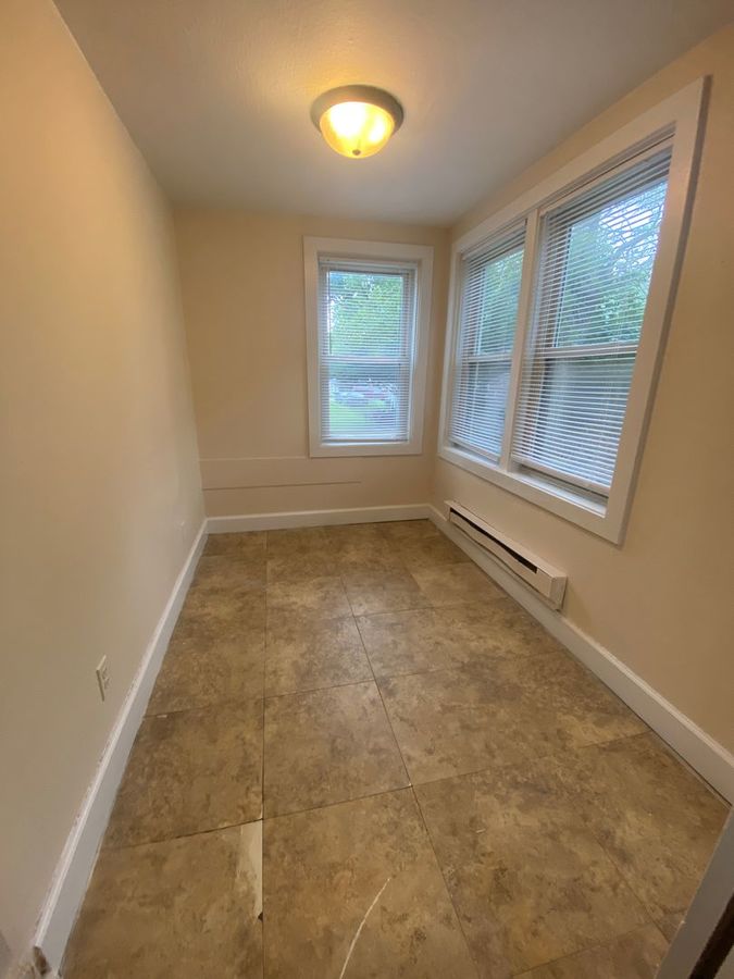 Monthly rent is $800 per month. Security deposit is $900, but could be higher based on credit and rental. Water, sewer, and garbage will be billed back through our utility reimbursement fee which is $70 each month. Tenant is responsible for the electric. This apartment has electric baseboard heat. Coin laundry available in dedicated laundry room in clean basement with new laundry equipment.