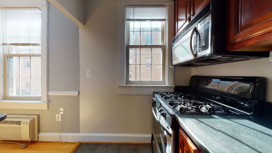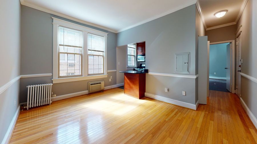 Welcome to 3026 Wisconsin Avenue NW. The unit has 10 foot plus ceilings throughout the apartment and an open floor plan. Enjoy plenty of counter space for cooking and watch TV at the same time! Sleek tiles and hardwood flooring in the kitchen & living room, respectively.