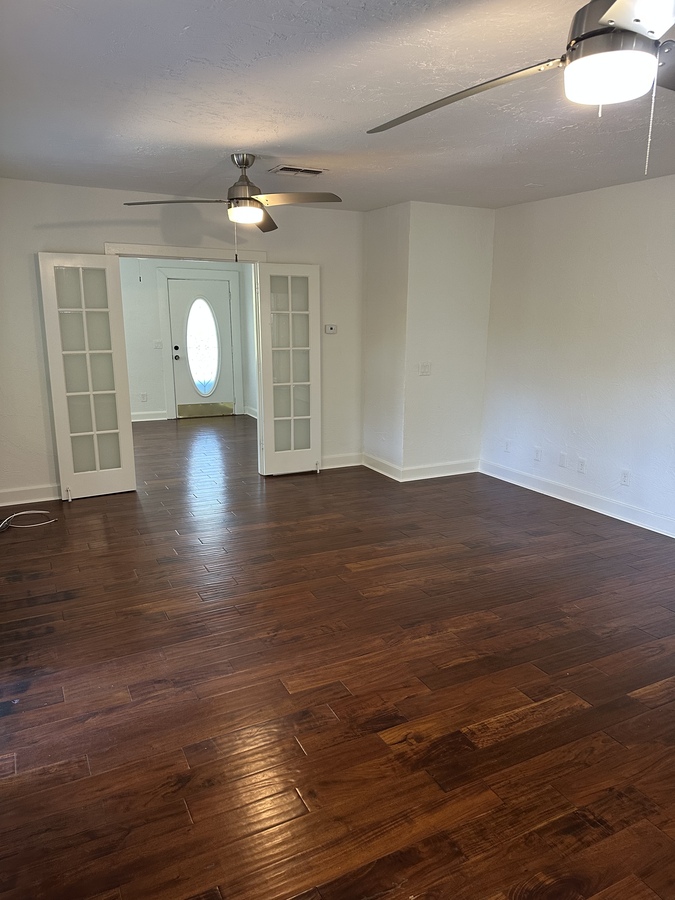 Seamless Indoor/Outdoor Living: Entertain effortlessly with French doors that open directly onto a private back patio.