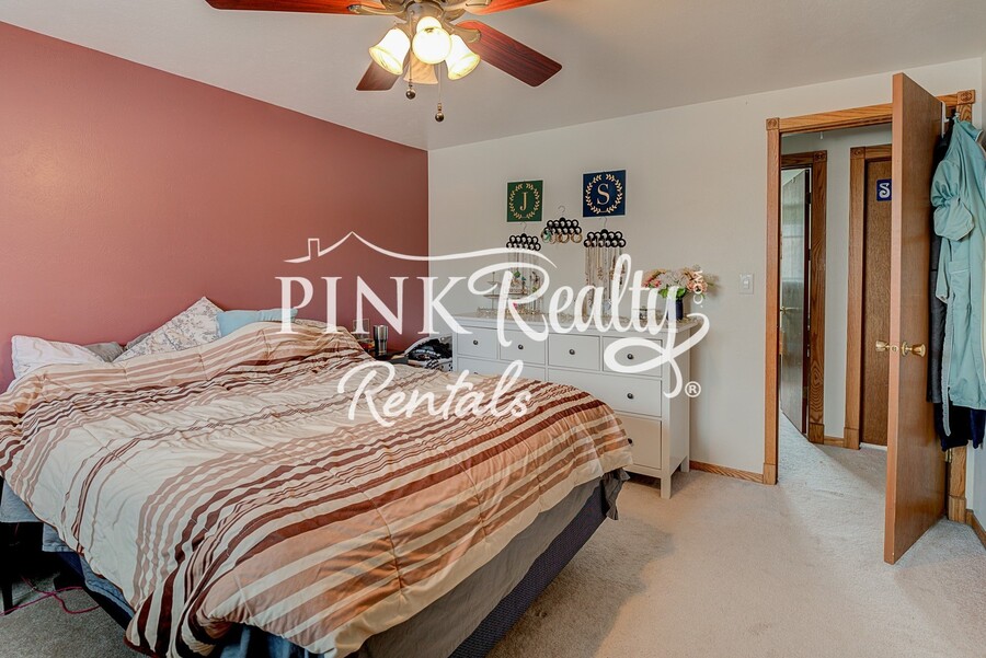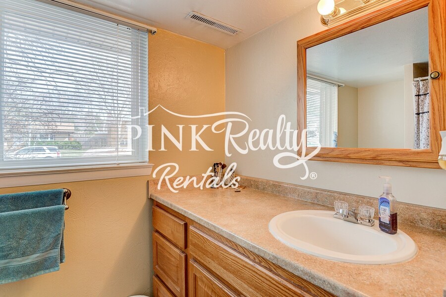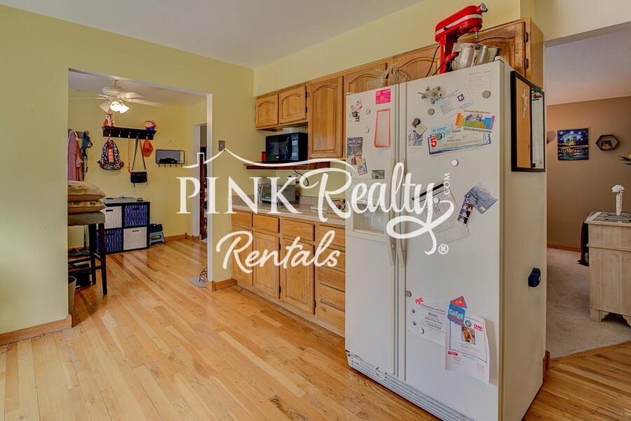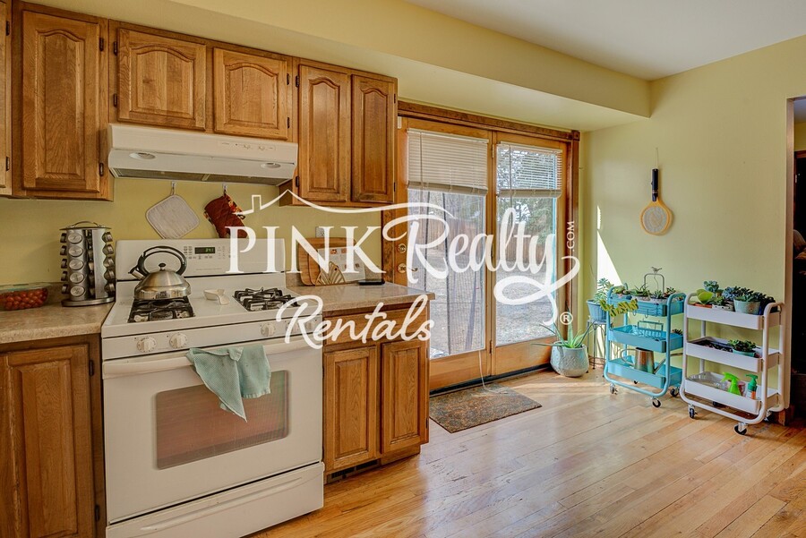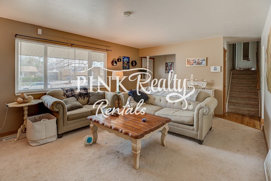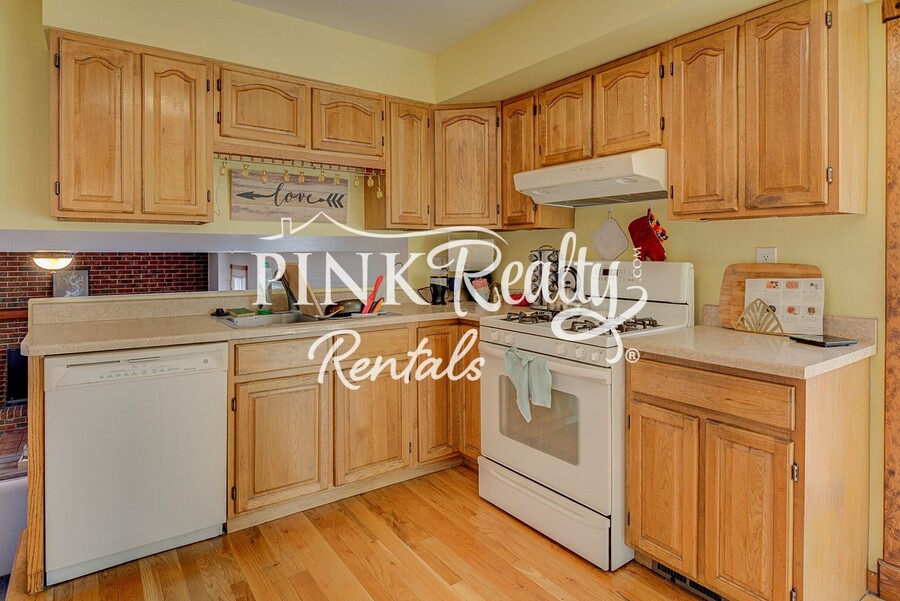 The kitchen has hardwood floors, gas stove, dishwasher and ample cabinet space. There is a good size living room on the main floor. The downstairs has a family room as well as a bedroom and bathroom, and the exterior has mature trees and a fenced back yard.