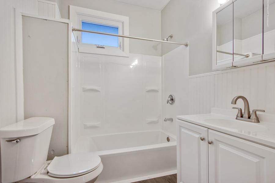 The bathroom is stylishly upgraded with modern fixtures and includes convenient in-unit laundry hookups.