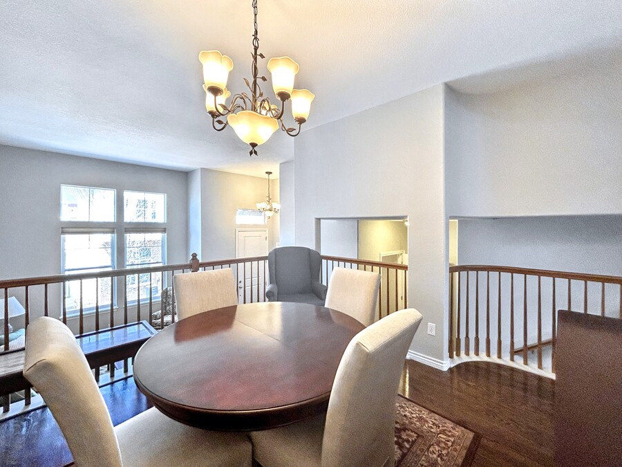 While the kitchen features an eat in area for everyday meals, a formal dining room is beautiful presented on its own balcony with a gorgeous hanging chandelier. An outdoor balcony finishes off the main level providing the perfect outdoor oasis for a morning cup of coffee or an afternoon BBQ.