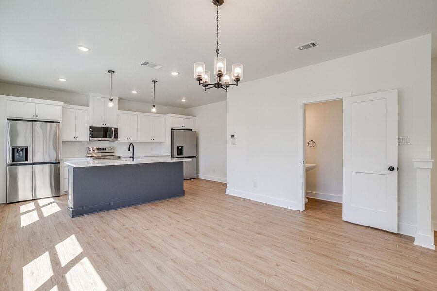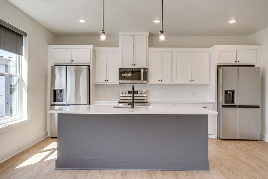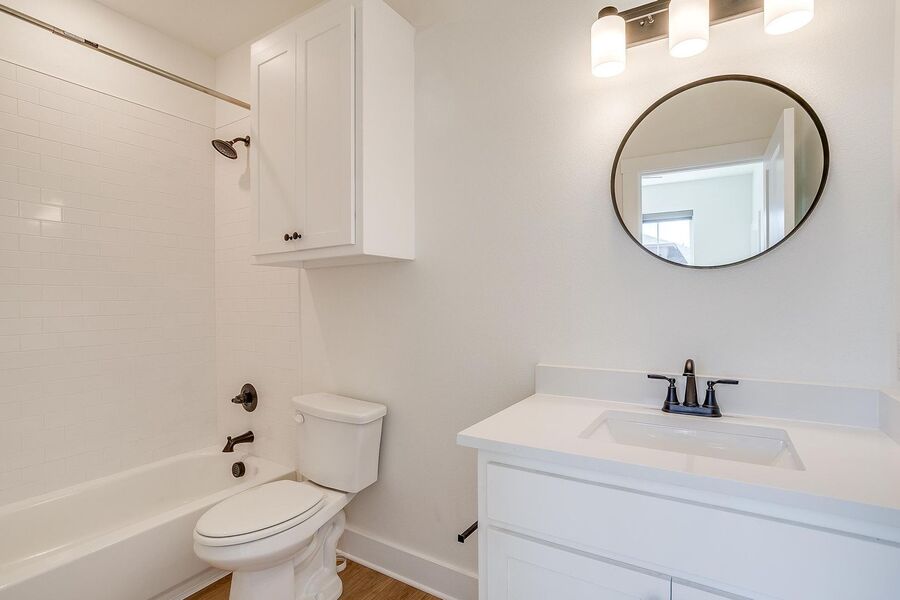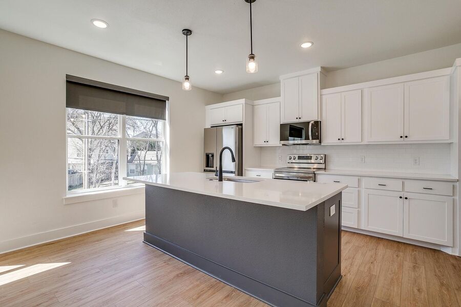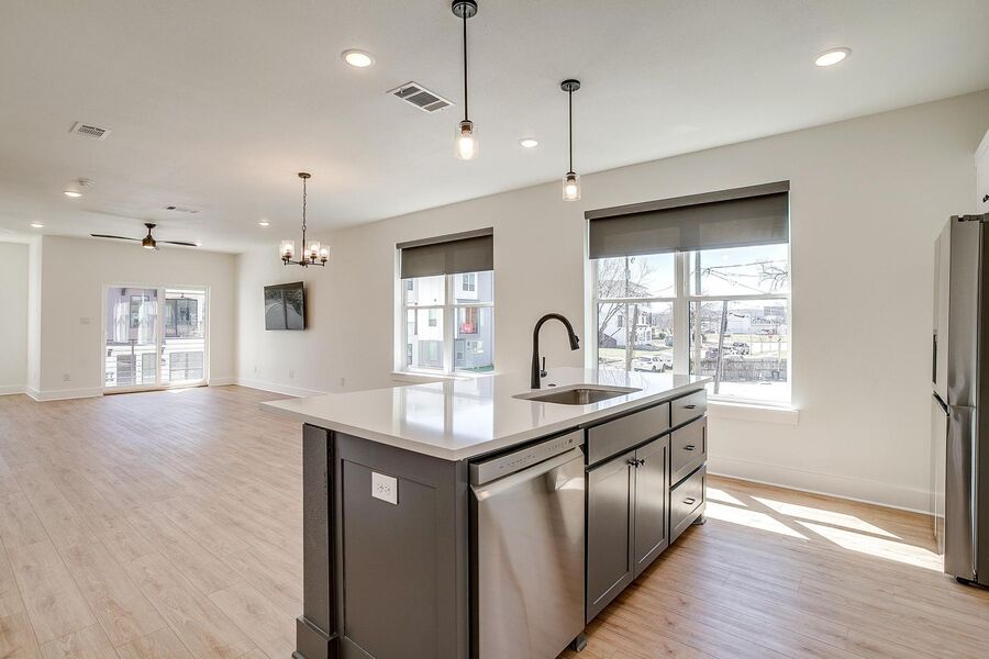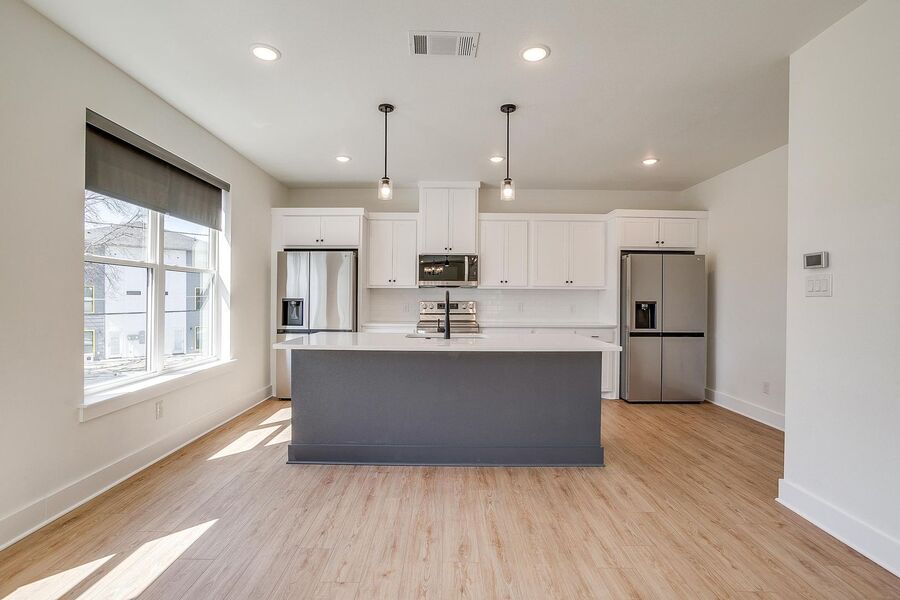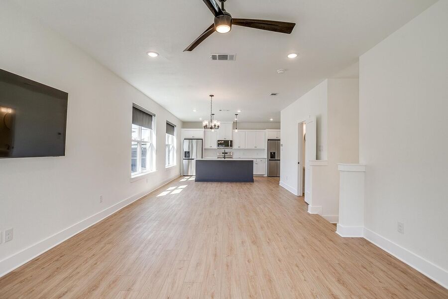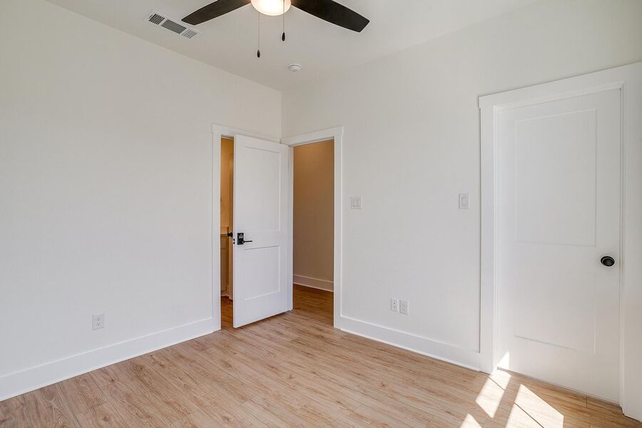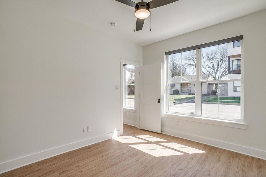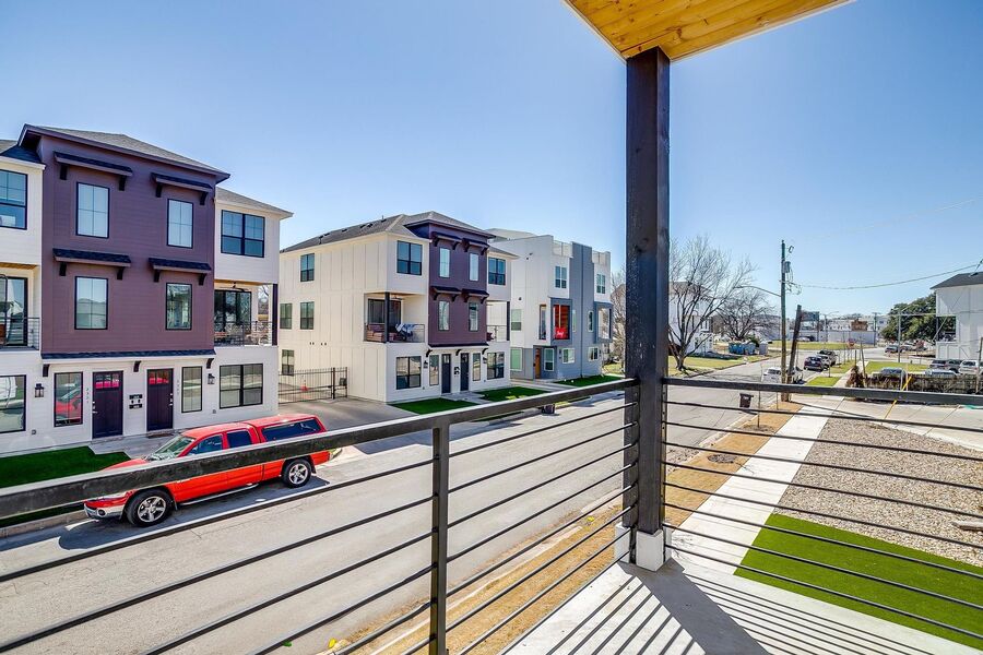 TCU housing at its best. There are 5 generous private bedrooms, each with a private bathroom and a private coded door lock. The common floor features solid-surface flooring, a balcony, a large open living area with a flat-screen TV, a powder bath, and a kitchen that your parents will envy. There are 2 bedrooms on the 1st floor and 3 on the 3rd floor with 2 sets of washers and dryers. Parking is private, well-lit, fenced, off-street, and on-site.