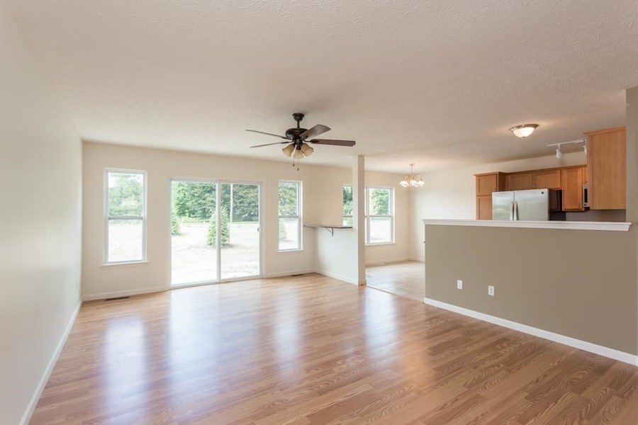 The main level boasts a bright and airy open layout, ideal for entertaining and everyday living. The living room flows seamlessly into the dining area and contemporary kitchen, which is equipped with sleek countertops, ample cabinetry, and modern appliances. A convenient half bath on the main floor adds to the functionality of the space.
