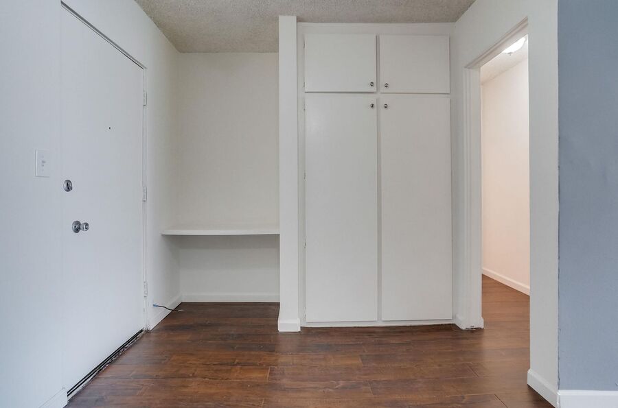 - Hardwood cabinets