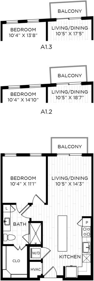 Modern residences featuring one and two bedrooms with 10-foot ceilings