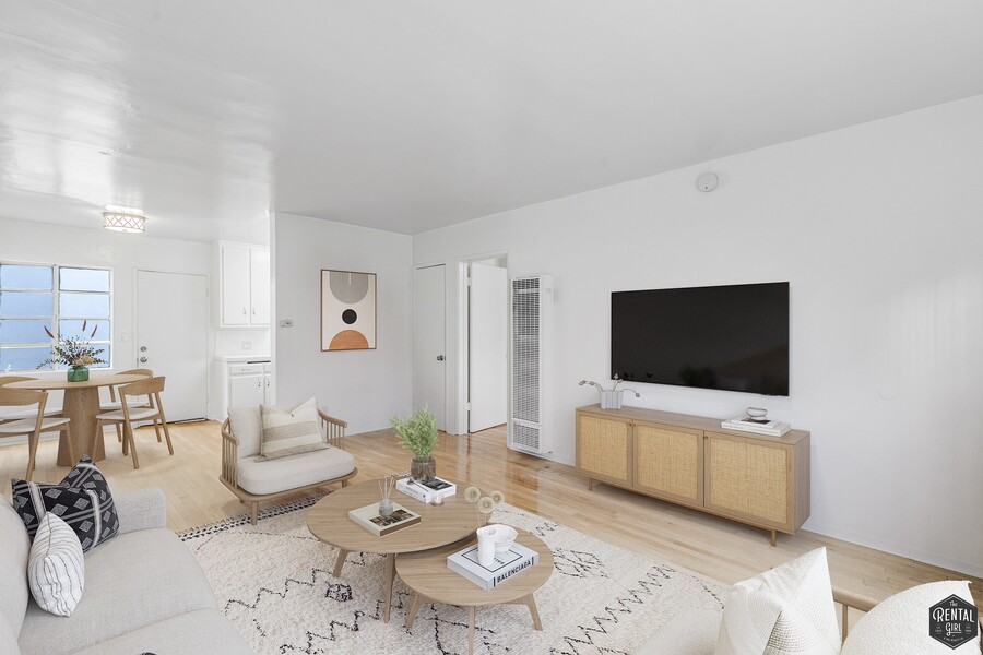 Inside, you’ll find genuine hardwood floors that add warmth and character throughout the space. The living area feels bright and comfortable, with a layout that’s easy to make your own whether you’re hosting a friend or enjoying a quiet night in.
