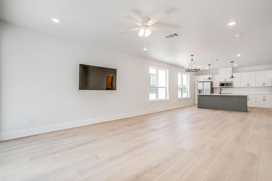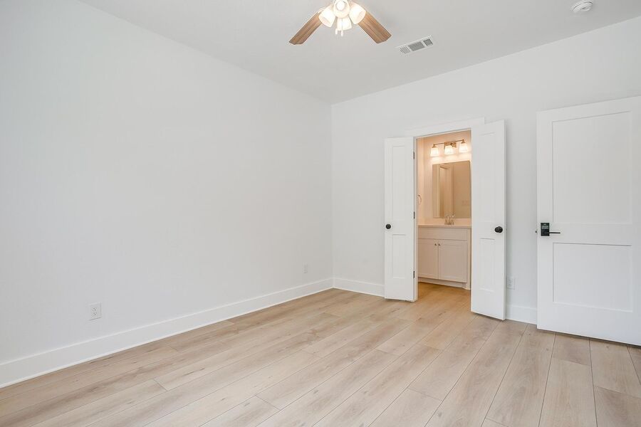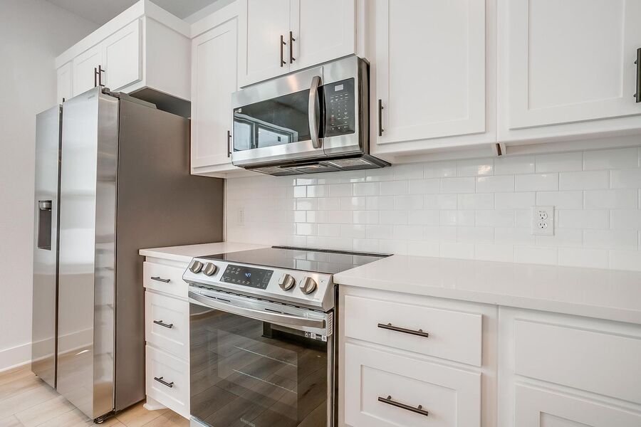 TCU housing at its best. There are 5 generous private bedrooms, each with a private bathroom and private coded door lock. The common floor features solid surface floors, a balcony, large open living area with flat screen TV, powder bath, and a kitchen your parents will envy. There are 2 bedrooms on the 1st floor and 3 on the 3rd floor with a set of washers and dryers on each floor – so no schlepping up and down the stairs to do your laundry. Parking is private, well lit, fenced, off street, and onsite.