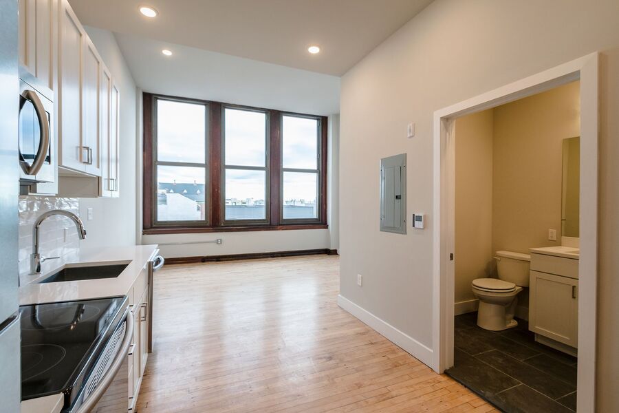 Don’t miss this breathtaking studio, 1 bathroom with historic charm and original wood trim finishes! This unit has everything: hardwood floors, mini split system heating/cooling, recessed lighting, plus a washer/dryer in unit! The kitchen has white cabinets with sleek hardware against textured white subway tile back splash, quartz counter tops, a garbage disposal and stainless steel dishwasher, microwave, refrigerator and electric range. The bathroom features a vanity with the same counter tops that match the kitchen and a shower/tub with a sliding glass door. The Walter George Smith Public School, listed on the National Register of Historic Places, has undergone an amazing transformation to bring you these luxury apartments! All tenants will have access to the two outdoor spaces (over half an acre combined!) on the ground floor and mezzanine patios, and roof deck with stellar skyline views! Located at 19th and Wharton in Point Breeze, you’ll be minutes from the OCF Coffee House, American Sardine Bar, Graduate Hospital, East Passyunk and MORE!