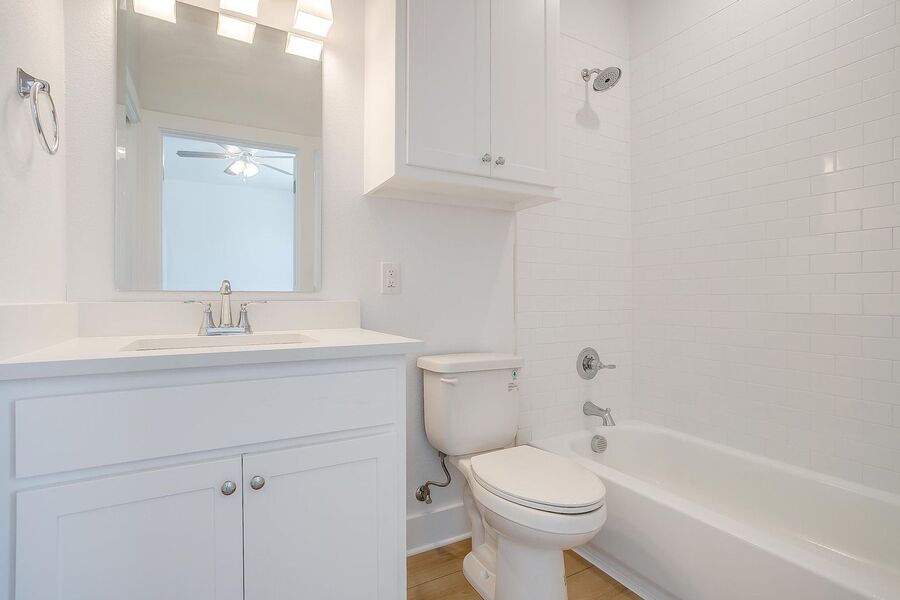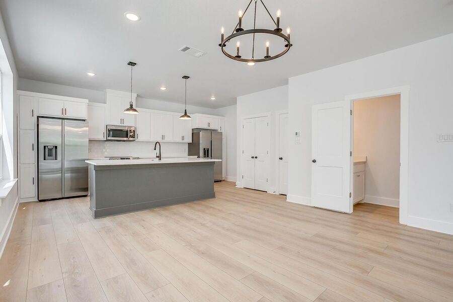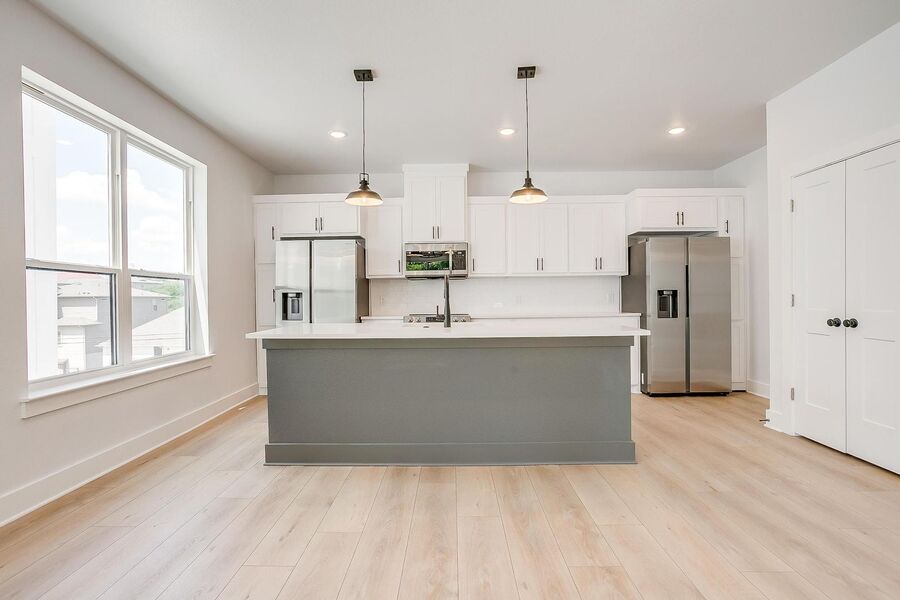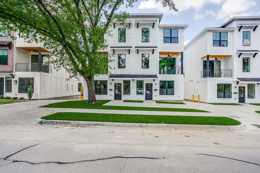 TCU housing at its best. There are 5 generous private bedrooms, each with a private bathroom and private coded door lock. The common floor features solid surface floors, a balcony, large open living area with flat screen TV, powder bath, and a kitchen your parents will envy. There are 2 bedrooms on the 1st floor and 3 on the 3rd floor with a set of washers and dryers on each floor – so no schlepping up and down the stairs to do your laundry. Parking is private, well lit, fenced, off street, and onsite.