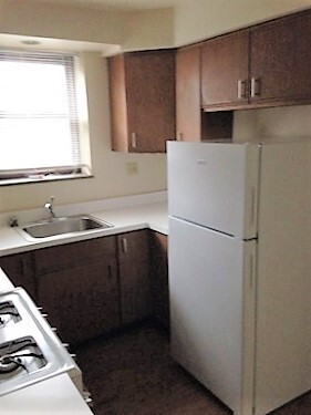 This apartment features a comfortable living area with laminate hardwood-style flooring, a spacious carpeted bedroom, and a kitchen equipped with a gas stove and refrigerator. Heat, gas, water, sewer, trash, coin- or app-operated laundry, and a storage locker are all included. Tenant only pays the electric.