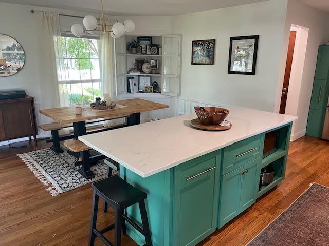 - Hardwood cabinets