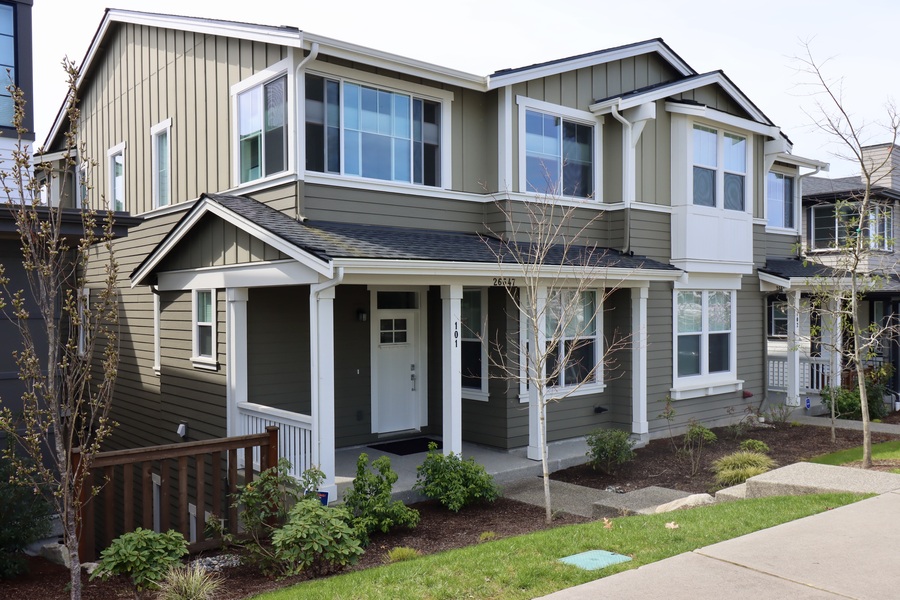 Impressive duplex townhome showcasing exceptional finishes throughout will leave a lasting impression. Enter into the open-concept layout, flooded with natural light, highlighting gorgeous hardwood floors and lofty appointments. The gourmet kitchen features high-end stainless steel appliances, custom cabinetry, stylish window treatments, a striking fireplace wall, and a covered deck. Ascend to the generous primary suite, which includes a lavish bathroom and a spacious walk-in closet, along with two additional bright bedrooms and a utility room. The main level also features a remarkable office, while the outstanding lower-level bonus room provides plenty of space for entertaining. Enjoy the advantages of air conditioning, smart home technology, and premium upgrades at every turn! The HOA offers access to a beautiful clubhouse with a gym just steps away, and you're only minutes from shops, restaurants, trails, and the Microsoft connector, with Redmond just 10 minutes away. This is an absolute must-see!