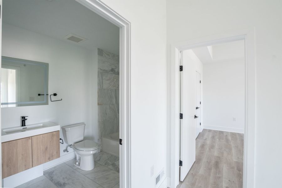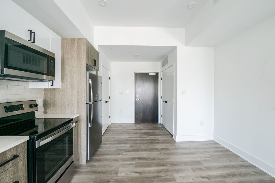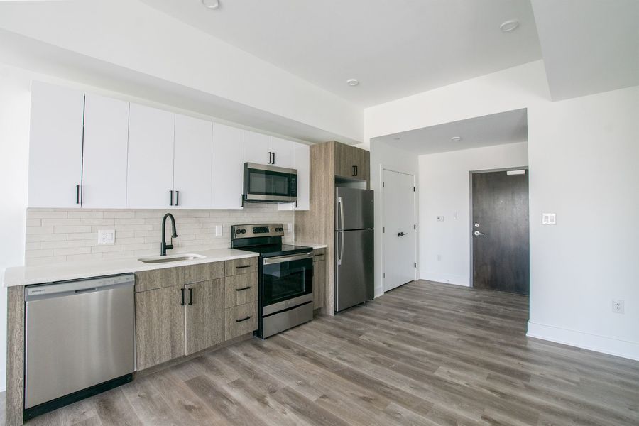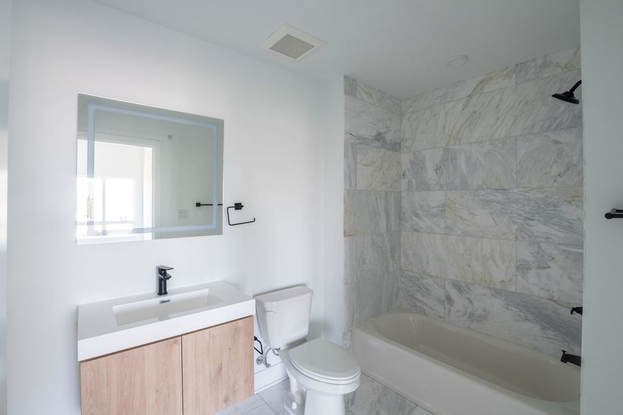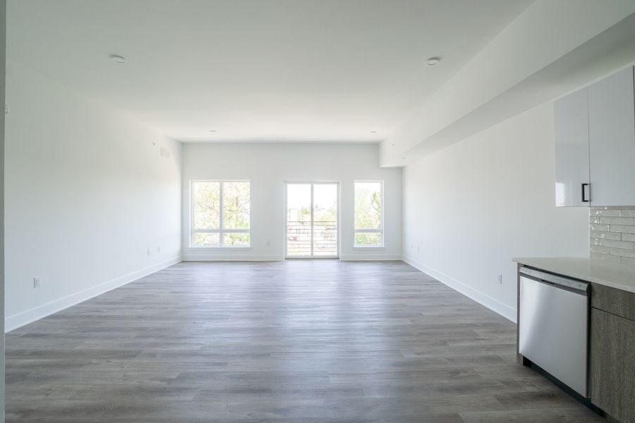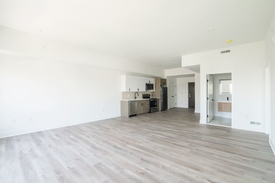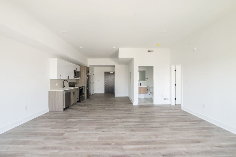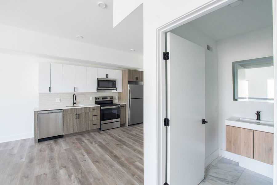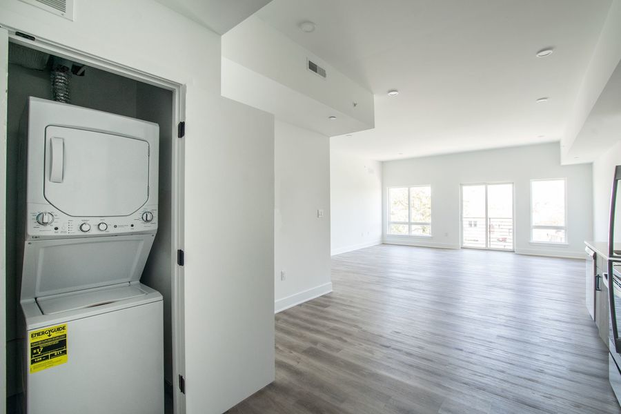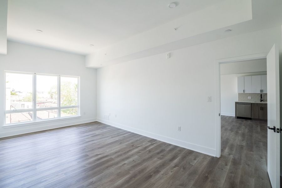 This expansive 1 bedroom, 1 bathroom corner apartment comes with modern finishes, including hardwood floors, central AC, in-unit laundry, as well as recessed lighting. Natural light is also abundant with multiple oversized windows and access to a small private balcony. There is a massive living space that leads to the kitchen, which is beautifully appointed with quartz countertops, stainless steel appliances and subway tile backsplash. The contemporary full bathroom features a shower/tub and sleek vanity with a unique lighted mirror, while the bedroom is spacious with its own closet. Residents also have access to a package room, bike storage room, and shared roof deck that offers amazing city views!