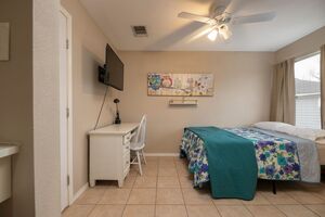 Comfort, convenience and location are key! You'll find this fully furnished 1 bedroom, 1 bath room with direct exterior access in a home located on a quiet cul-de-sac minutes away from 1604. The room is private with its own kitchenette with refrigerator, shower, workspace, refrigerator, and tons of storage. The room is designed with a modern aesthetic and a comfortable living space. The house itself is equipped with shared laundry, living room, and full size kitchen, ensuring your convenience at all times. One of the standout features of this apartment is the outdoor kitchen, perfect for those who love to cook and dine under the open sky. The direct exterior access adds to the ease of movement and the overall living experience.