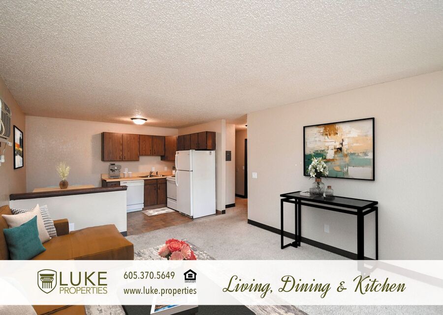 Welcome to Sycamore Village, a fully renovated apartment community in the heart of Sioux Falls, SD, now under professional management! Located on the east side of town, these apartments have been beautifully updated and are ready for new residents. This one-bedroom, one-bath home combines comfort and style with a modern kitchen featuring hardwood cabinets and updated appliances, including a refrigerator, stove/oven, and dishwasher. The dining and living rooms showcase attractive hardwood floors, while the bedrooms are carpeted for added warmth and comfort.