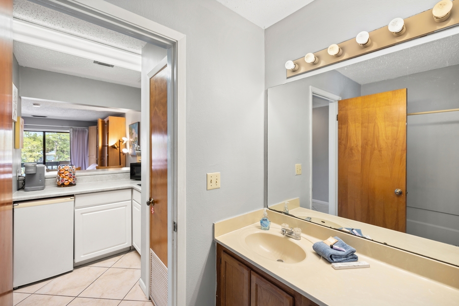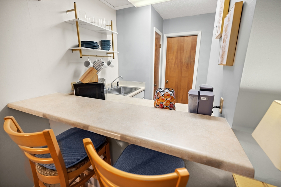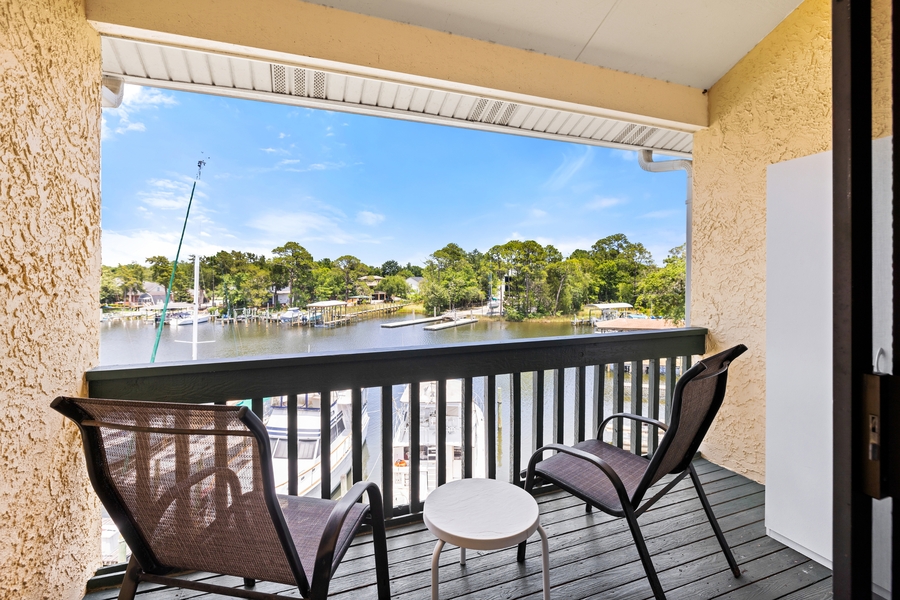 Enjoy low-maintenance waterfront living in the heart of Bluewater Bay! This charming studio top-floor condo offers peaceful bay views and walkable access to LJ Schooners, the marina, and more.