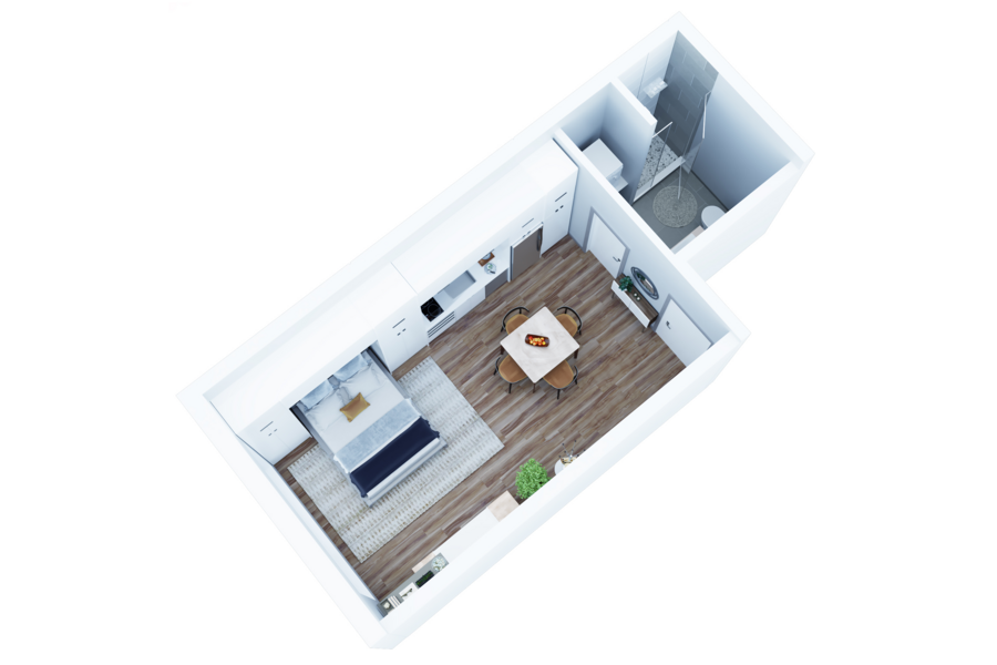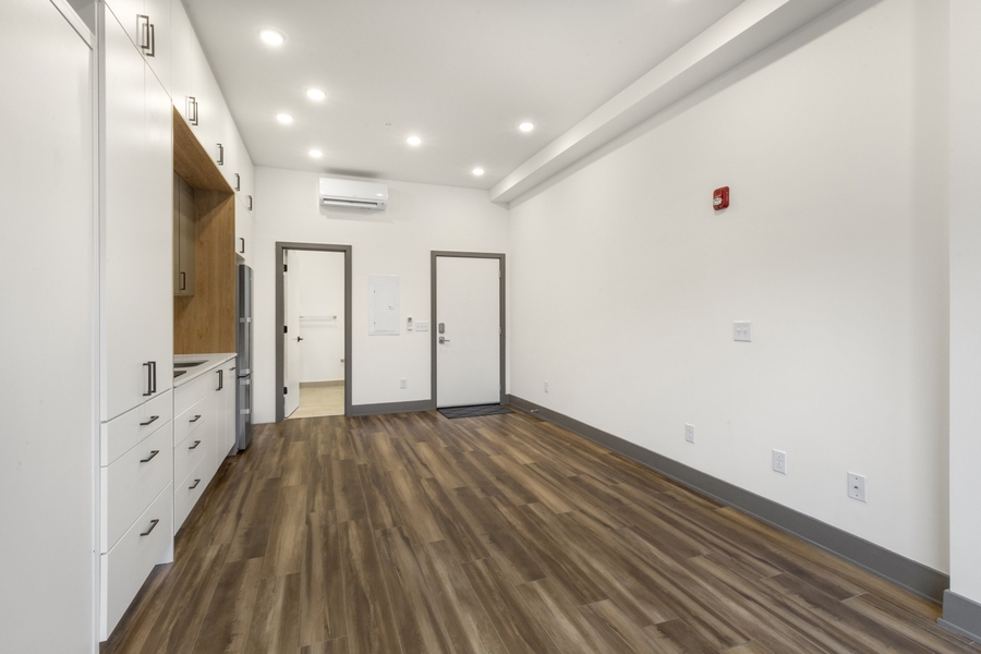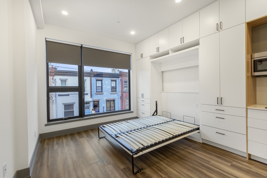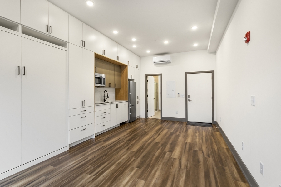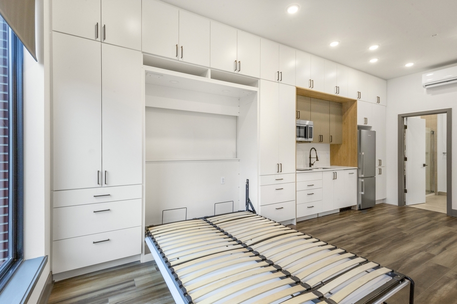 Available Early December | Unit #201 is a beautiful Studio apartment featuring hardwood floors, recessed lighting, a built-in murphy bed, and high-end luxury finishes throughout.