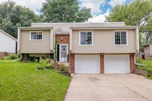 An attached two-stall garage is included, and a washer and dryer come with the unit.