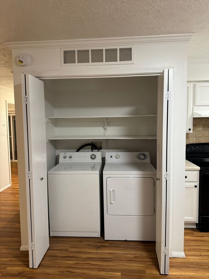 Modern open-concept kitchen perfect for entertaining, plus central A/C and in-unit washer/dryer for everyday comfort. Enjoy a private deck, secure building entry, and off-street parking for added peace of mind. Close to Valley Hi Golf Course, parks, dining, Fort Carson, and downtown—this stylish 2-bedroom offers the best of comfort and convenience.