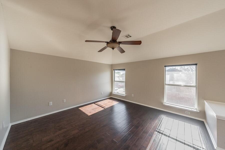 Beautifully maintained two-story brick home located in the desirable Fairfield Estates community, offering an exceptional leasing opportunity within highly acclaimed Frisco ISD. This 4-bedroom, 2.5-bath residence is thoughtfully positioned near the neighborhood pool and within walking distance to the elementary school, providing everyday convenience for busy households. The home reflects true pride of ownership throughout. The inviting family room features a cozy fireplace, creating a comfortable space for gatherings or quiet evenings. The kitchen and dining areas are designed for practical flow, supporting both daily routines and entertaining. The primary suite is located upstairs and offers a private retreat complete with dual vanities, separate walk-in closets, a garden tub, and a separate shower. Additional bedrooms provide flexibility for family members or guests. A downstairs bedroom offers versatile use as a home office, playroom, or secondary living area to suit your needs. Star State Realty LLC Alicia Douglas