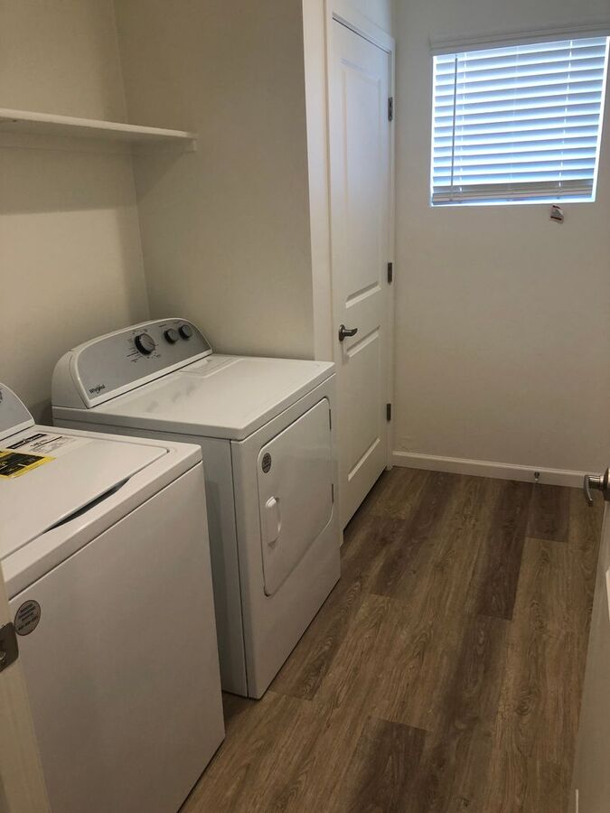 This single family home is a 2 bedroom 2 bath that includes Quartz countertops, Solar electric, soft closing cabinets, Stainless steel appliances, full size washer and dryer in a dedicated laundry room with additional closet and storage space. Remote operated ceiling fans/lights in all rooms, Ceramic flooring, fenced in yards with block walls, 2-car garage, custom blinds and dual pane windows. Walk in master closet and double sinks in master bathroom. Plenty of storage space throughout.