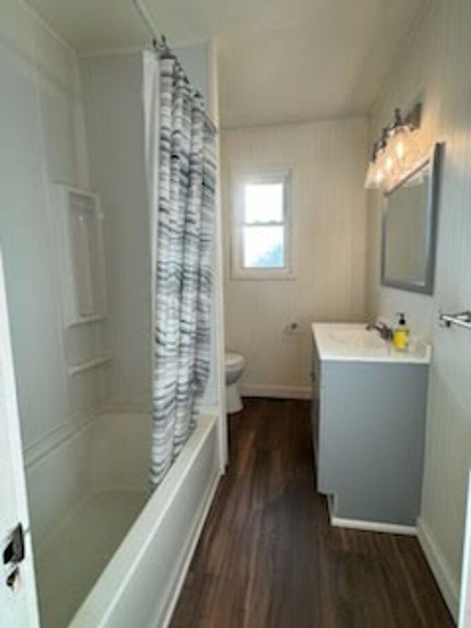 The home includes three comfortable bedrooms, a clean and updated full bathroom with a tub/shower combo and modern vanity, and a semi-finished walk-out basement with a dedicated laundry area offering additional usable space.