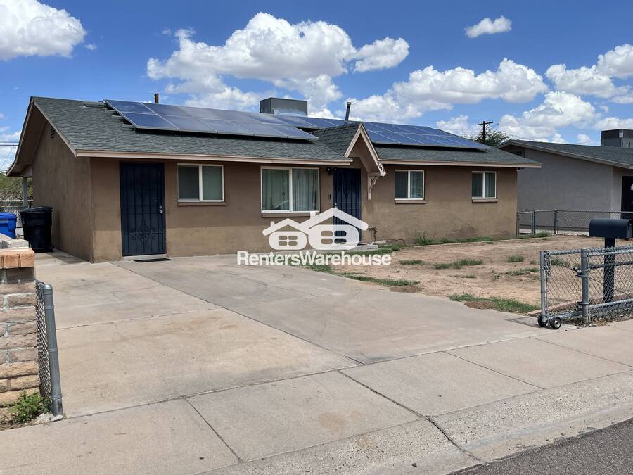 This remodeled home has a big yard, an extended gated driveway, a covered patio, stainless appliances in the kitchen, and no carpet!