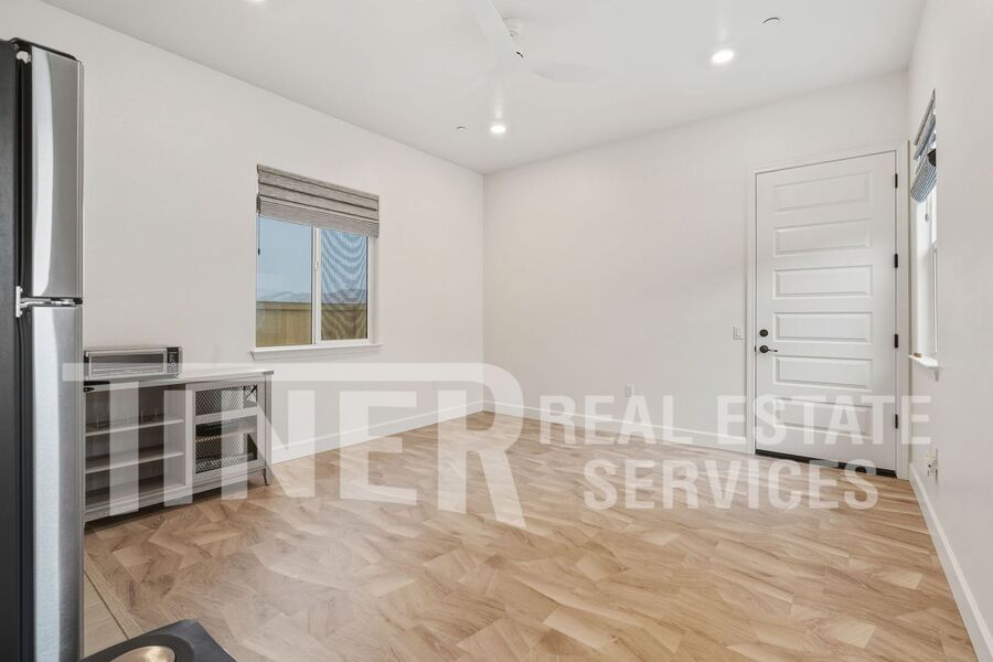 Next-Gen Suite in Gated 55+ Active Adult Community - Enjoy low-maintenance living in this private next-gen suite located within a gated 55+ active adult community. This approximately 500 sq ft residence offers a thoughtful layout with a private entrance and a one-car garage best suited for midsize or smaller vehicles. The open living area features tall ceilings and wood LVP flooring throughout, creating a light and spacious feel.