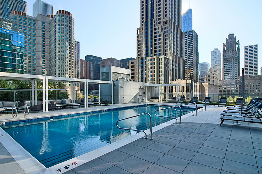This sleek Streeterville high rise is packed with luxury and convenience. Kick back on the expansive sun deck with pool, cabanas and outdoor lounge fireplace, grilling and dining area, offset with amazing lake and city views. An indoor residents lounge with demonstration kitchen and billiards room gives you space to work or entertain. Staying fit is a breeze with a fitness center, spin and yoga studio. Each unit greets you with wood plank flooring, maple white quartz, stainless steel appliances and floor-to-ceiling windows.