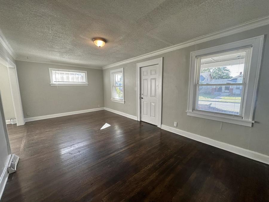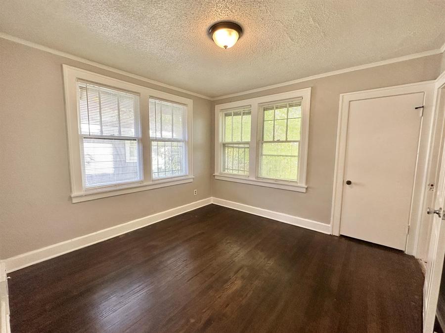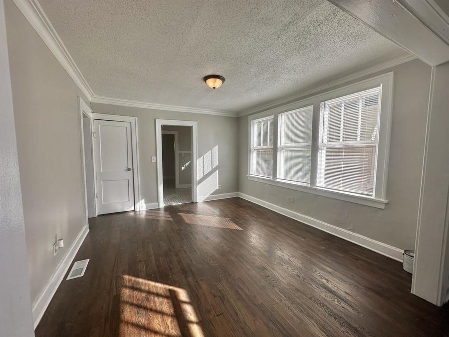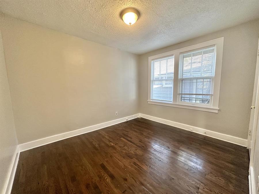 This charming 3-bedroom, 1-bath home boasts timeless elegance and modern comfort. With dark hardwood floors throughout, you'll appreciate the rich warmth underfoot in every room. The bathroom features stylish tilework, both in the bath and shower, for a spa-like experience.