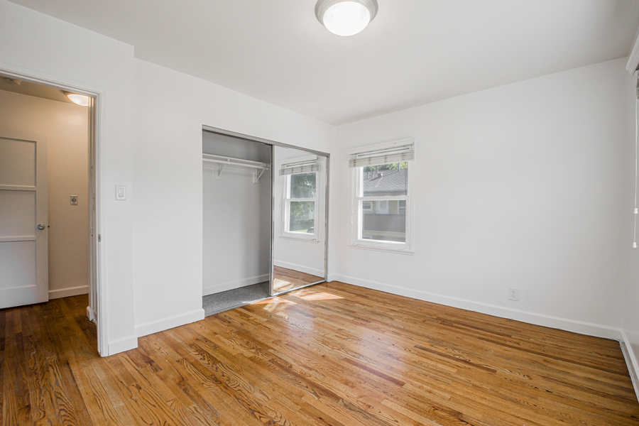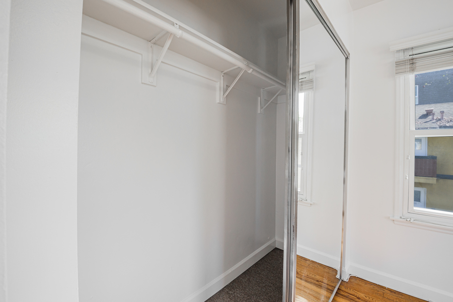 ~ Spacious Bedroom: With a sizable closet, and extra storage cabinets above.