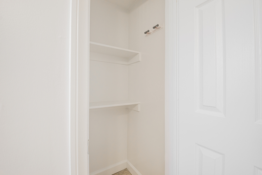 ~ Ample Storage: Extra cabinets above the bedroom closet for effortless organization.