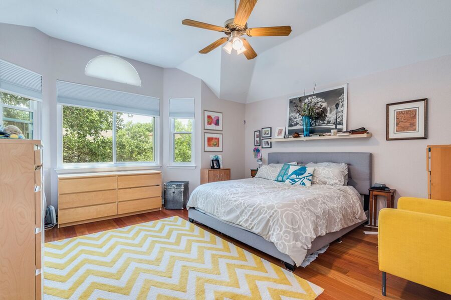 Tucked in a quiet cul-de-sac near Great Hills & Oakview Parks, this updated home features a primary suite, second bedroom suite, and walk-in closets throughout. Enjoy a bonus office (5th bed option) and a playroom (6th bed potential)—ideal for flexible living. The xeriscaped front yard, turfed backyard, and solar panels offer beauty and efficiency. Close to The Domain, Arboretum, HEB, Costco, and Trader Joe’s. Pets welcome!