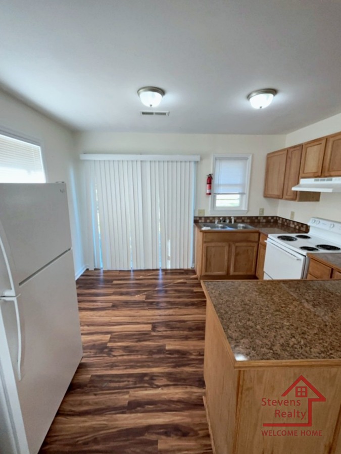 This lovely 2-bedroom 1-bath brick apartment is perfect for those who appreciate the simple pleasures in life, with its warm and inviting brick exterior and comfortable interior bathed in natural light, and dark-stained wooden flooring creating a cozy space. The open floor plan space connects the living area, dining area, and the well-equipped kitchen seamlessly and has double glass doors access to the backyard extending your dining experience outdoors. The good-sized bedrooms provide a relaxing space to rest with ample closet space for your belongings. This home provides you with the modern convenience of a smart home system and central heating and air for a healthy environment, energy efficiency, and a secure home for your family. Pets at 30 lbs. or less are welcome.Conveniently located close to stores and restaurants with nature in your backyard.