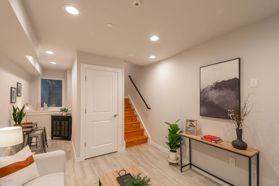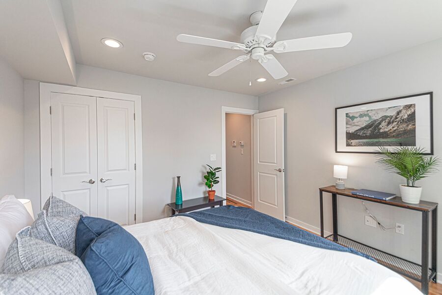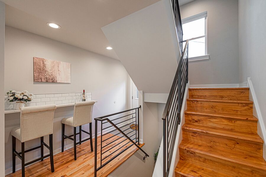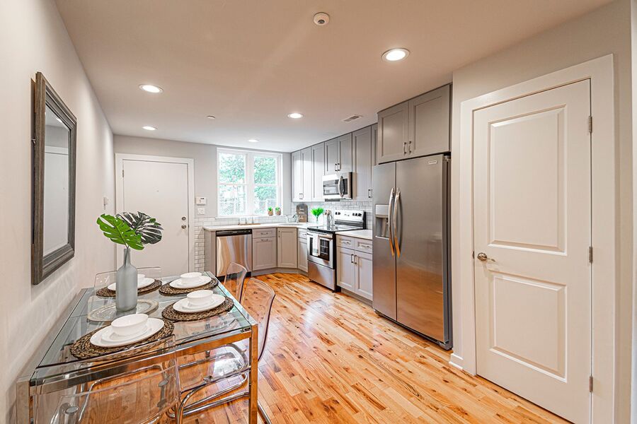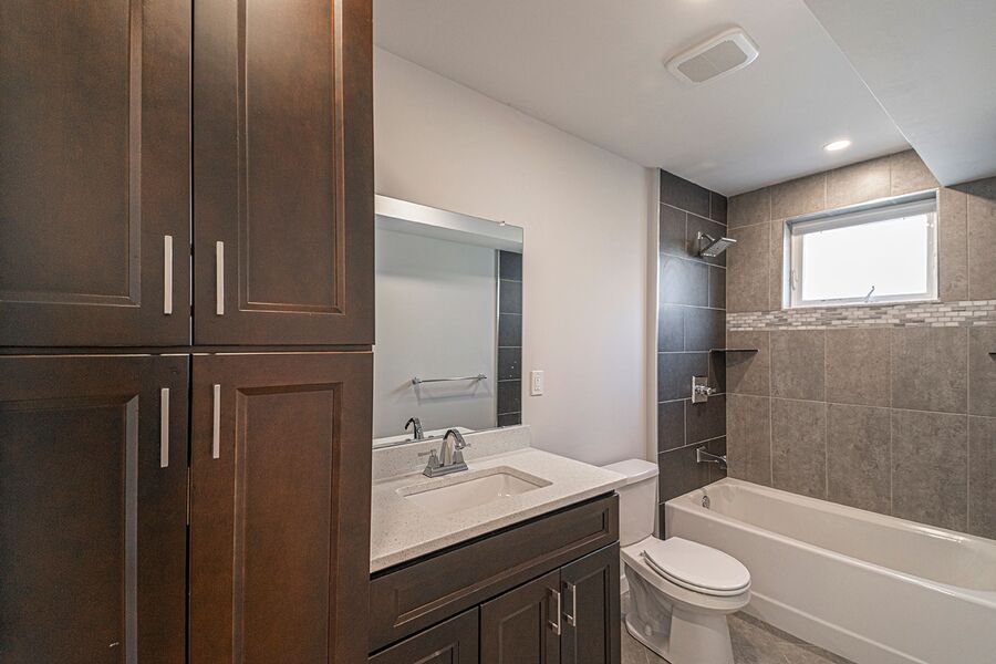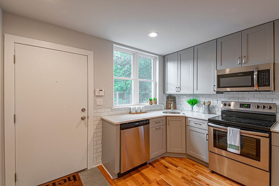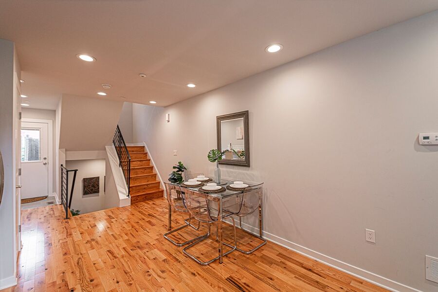 This gorgeous 4-story, 3 bedroom, 3 full bathroom home with high end finishes throughout will not last long! You will enjoy hardwood floors throughout, central air, recessed lighting and two outdoor spaces! Upon entering the home, you’ll notice the kitchen that’s fitted with quartz counter top, garbage disposal and stainless steel dishwasher, microwave, refrigerator and electric range, a pantry closet, and breakfast bar just before you walk out to the patio! Downstairs the finished basement offers additional space for a tv room or rec room. Heading upstairs, there is a bedroom and bathroom on each floor! The second floor has a bathroom with a large linen closet and shower/tub, washer/dryer, a spacious bedroom with a ceiling fan and large closet. The third floor has a bathroom with a double vanity sink and glass shower, and a bedroom that mirrors the floor below. Heading up to the fourth floor is a huge window in the hallway that lets in beautiful natural light, a wet bar, full bathroom with another shower/tub, and the third bedroom. Finally, you can end your day watching the sunset over the skyline and your very own roof deck!