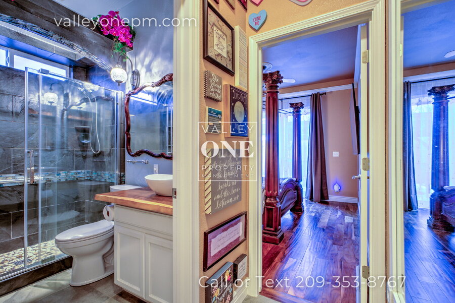 Encounter a serene oasis at 2299 1/2 Ogden Sannazor Dr, nestled in the heart of Tracy, CA. This charming two-bedroom duplex offers a harmonious blend of comfort and style, perfect for those seeking a tranquil retreat. Discover the elegance of hardwood flooring and exotic hardwood epoxy butcher block counters, adding warmth and sophistication. Included queen size Murphy bed coverts living room to 2nd bedroom in seconds!