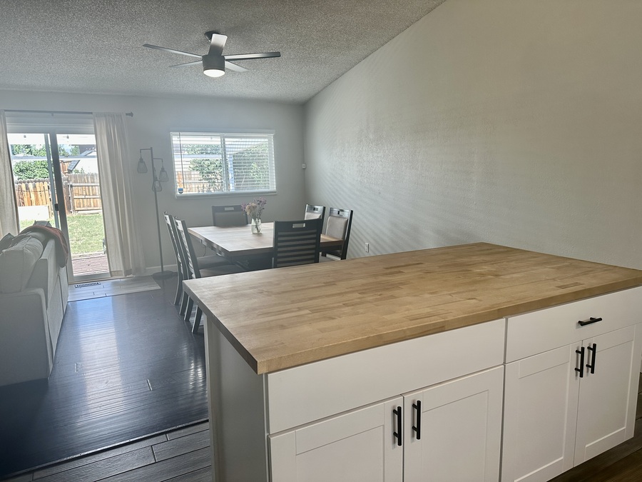 Three bedroom rancher in Heathercrest right off of Powers Blvd. Open floorpan on the main level with vaulted ceilings, vinyl plank flooring, white shaker cabinets, butcher block counters, tile backsplash and large kitchen island. The spacious primary bedroom, full bath and additional bedroom are located on the main level. Walk out to large fenced backyard, patio and pergola. The basement provides a family room area, laundry room and bath and a third spacious bedroom. Established neighborhood with mature trees and close to parks, schools, shopping, dining and entertainment.