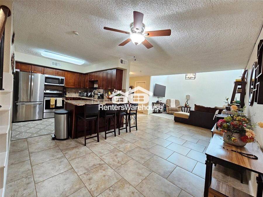 Lovely 4-bedroom, 3 full bath townhome ready for move-in! The home features a stylish kitchen equipped with matching stainless steel appliances, including a French door refrigerator, granite countertops, tile backsplash, and a spacious pantry. The living room is filled with natural light from large windows and showcases a modern dimmable light fixture. The versatile den can serve as a formal dining room or home office space. On the first floor, a private bedroom with a decorative accent wall and can also double as a guest suite conveniently located to a full bathroom. Upstairs, the primary suite and secondary bedrooms all feature custom accent walls. Energy-efficient double-paned windows, a mix of clean tile and carpet flooring, and an in-unit washer and dryer for your convenience. Community amenities include a pool, tennis and basketball courts, and a playground within walking distance. Located close to Kemah Boardwalk! Low deposit plan! Monthly concierge package!