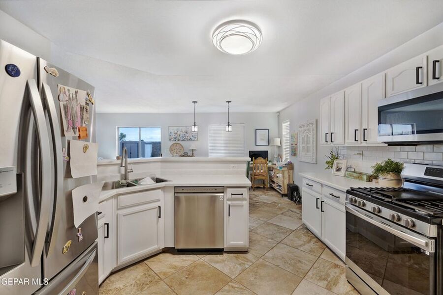 This well-kept home offers comfort, style, and peace of mind. Featuring refrigerated air and a newer roof, the property is designed for easy living year-round. Inside, you'll find tile and engineered wood flooring throughout, creating a clean and modern feel. The kitchen showcases crisp white cabinetry and a tiled backsplash, while the bathrooms are finished with granite countertops. All bedrooms are generously sized and include ceiling fans for added comfort. Enjoy time outdoors in the beautifully landscaped front and backyard—perfect for relaxing or entertaining.