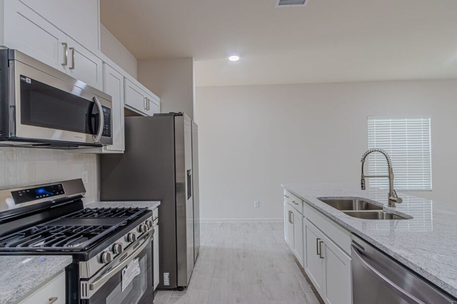 Be the first to call this gorgeous Palo Verde Desert Series home! Featuring modern design, high-end finishes, and luxurious bathrooms, this property combines style and comfort perfectly. The kitchen boasts stainless steel appliances, while energy-efficient systems help keep maintenance low and costs down. Enjoy all the perks of brand-new construction in the desirable Summer Sky subdivision—ready for you to move in!
