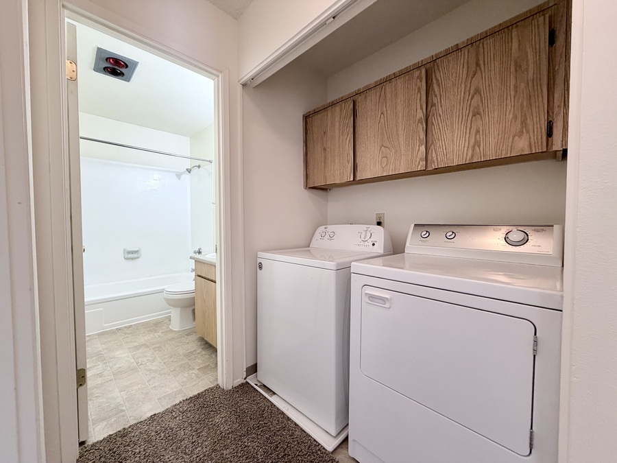Two comfortable bedrooms and a full bathroom provide a great balance of space and functionality. Enjoy the added convenience of an in-unit washer and dryer.